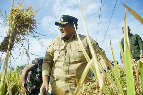 TANAH DATAR, KABARTERKINI.co.id – Bersama Badan Usaha Milik Nagari (BUMNag) Jaya, Wakil Bupati Tanah Datar Richi Aprian panen raya padi percontohan pupuk Eco Farming di Jorong Kapuah, Nagari Pagaruyung, Kecamatan Tanjuang Ameh, Selasa 14 Februari 2023.
