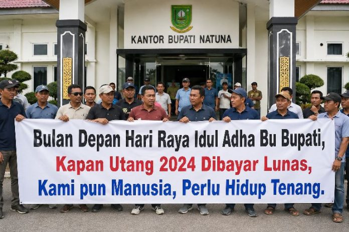 APAKAH utang proyek 2024 bakal di bayar lunas Pemerintah Kabupaten Natuna pada Mei 2026? Pernyataan selalu penulis dengar ketika duduk di sejumlah kedai kopi di Kota Ranai, Ibukota Kabupaten Natuna. Apalagi bulan depan, Idul Adha 1447 Hijriyah, mungkinkah bakal senasib dengan dua Ramadhan hingga dua Lebaran Idul Fitri, yakni 1446 dan 1447 Hijriyah, proyek telah rampung penyedia jasa konstruksi atau kontraktor selesai kerjakan pada 2024 silam, tidak di bayar lunas pada 2026.