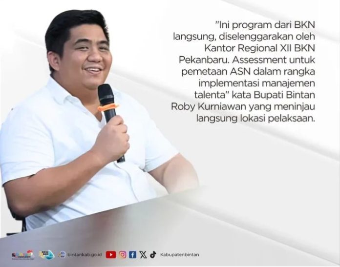 “Ini program dari BKN langsung, diselenggarakan oleh Kantor Regional XII BKN Pekanbaru. Assessment untuk pemetaan ASN dalam rangka implementasi manajemen talenta,” kata Bupati Bintan Roby Kurniawan yang meninjau langsung lokasi pelaksaan.