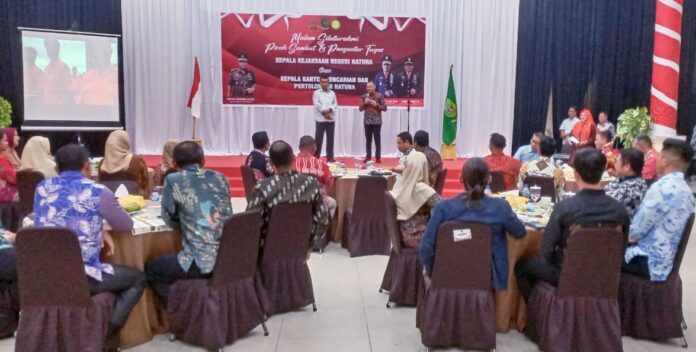 NATUNA, KABARTERKINI.co.id – Bupati Natuna Wan Siswandi dan wakilnya, Rodhial Huda menghadiri malam pisah sambut Kajari Natuna Imam MS Sidabutar dan Kepala Kantor Pencarian dan Pertolongan (KPP/Basarnas) Natuna Mexianus Bekabel. Malam pisah sambut berlangsung di Gedung Sri Serindit Ranai, Senin 6 Februari 2023.
