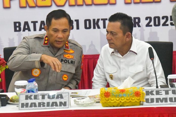 BATAM, KABARTERKINI.co.id – Gubernur Kepulauan Riau (Kepri) H. Ansar Ahmad bersama Wakilnya, Nyanyang Haris Pratamura menghadiri Rapat Evaluasi Bulanan Gugus Tugas Daerah Pencegahan dan Penanganan Tindak Pidana Perdagangan Orang (TPPO). Rapat berlangsung di Gedung Lancang Kuning, Markas Polda Kepri, Jumat 31 Oktober 2025.