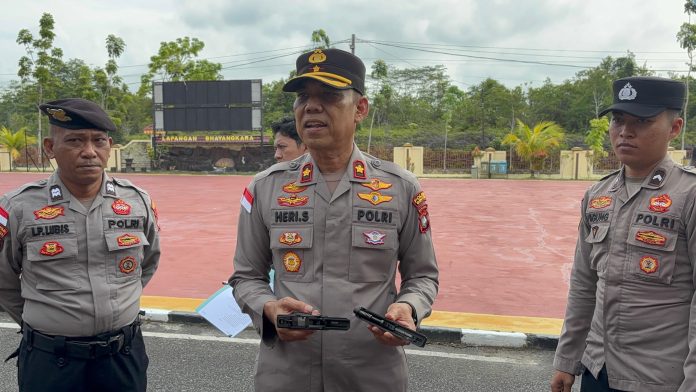 WAKAPOLRES Bintan Kompol Eri Sujati saat melaksanakan pengecekan senjata