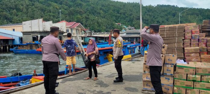 PERSONEL Polsek Siantaan saat memberikan imbauan di salah satu pelabuhan nelayan (foto istimewa)