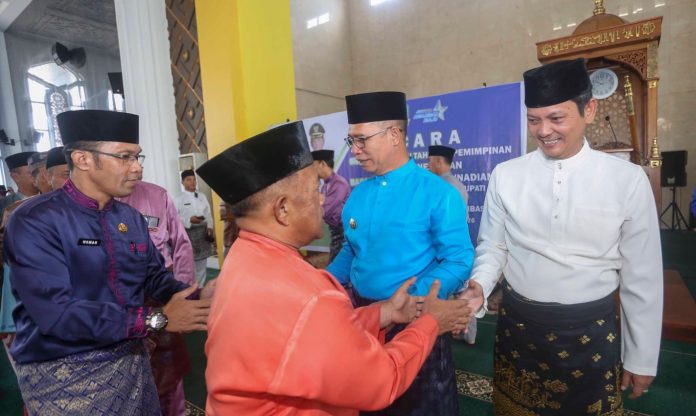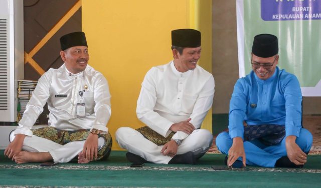 Tampak di dalam masjid, Datok Aneng dan Raja Bayu Febri Gunadian bercengkrama dengan sejumlah Aparatur Sipil Negara atau ASN serta tokoh masyarakat dan tokoh pemuda. Wajah ceria Bupati dan Wakil Bupati Kepulauan Anambas ini, membuat suasana semakin akrab.