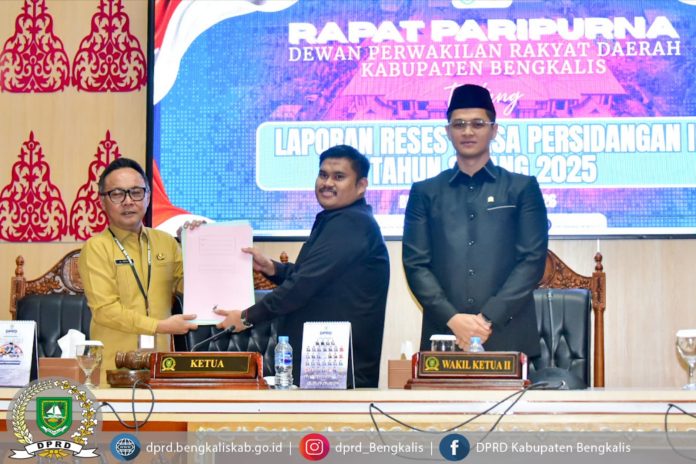 BENGKALIS, KABARTERKINI.co.id — Dewan Perwakilan Rakyat Daerah (DPRD) Bengkalis menggelar rapat paripurna Penyampaian Laporan Reses Masa Persidangan I Tahun 2025, sekaligus pembukaan Masa Persidangan II Tahun 2026, Senin 19 Januari 2026. Dalam rapat dipimpin langsung Ketua DPRD Bengkalis Septian Nugraha, didampingi Wakil Ketua II DPRD Bengkalis Hendrik Firnanda Pangaribuan, serta dihadiri Sekretaris Daerah Bengkalis Ersan, TH.