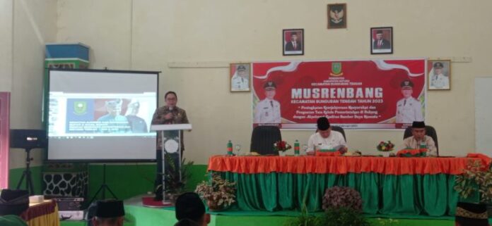 Musrenbangcam dibuka langsung, Asisten II Setda Natuna Basri di Aula Kantor Camat Bunguran Tengah, Jumat 3 Februari 2023.