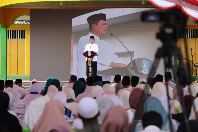 SAMBUTAN Gubernur Kepri Ansar Ahmad dalam acara Tabligh Akbar dan Doa Bersama di Pulau Penyengat (foto istimewa)