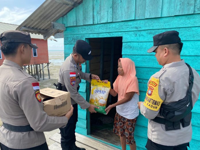 NATUNA, KABARTERKINI.co.id – Kapolsek Pulau Laut Ipda Ahmad Syukuri Hadi dan jajaran berbagi rezeki, berupa sembako pada warga kurang mampu dan lansia di Desa Tanjung Pala, Jumat 16 Januari 2026. Berbagi rezeki ini, salah satu program Jumat Berbagi, sesuai arahan Kapolres Natuna AKBP Novyan Aries Efendie.