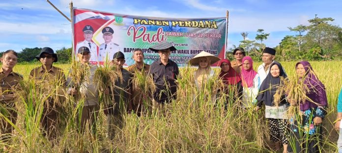 NATUNA, KABARTERKINI.co.id – Bupati Natuna Wan Siswandi, Wakil Bupati Natuna Rodhial Huda dan Ketua Tim Penggerak PKK Natuna Septi Dwiani Wan Siswandi menghadiri panen padi di Desa Payak, Selasa 6 Februari kemarin. Panen padi di desa kepulauan perbatasan itu, rangkaian kunjungan kerja mereka di Kecamatan Serasan Timur.