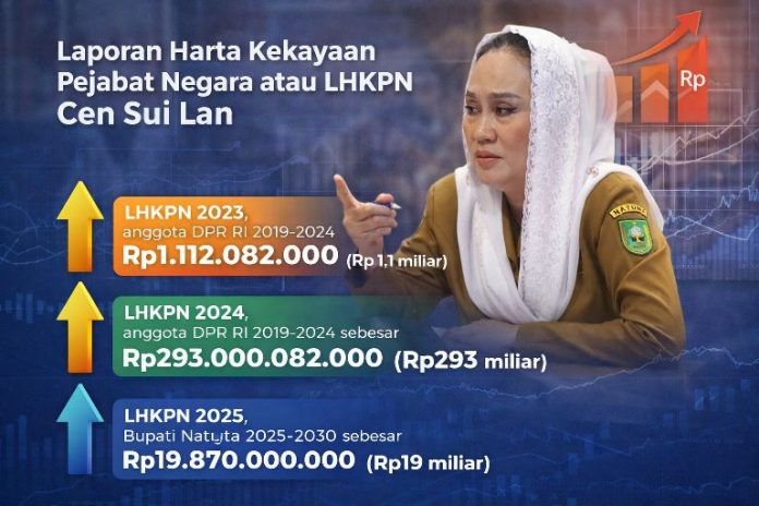 NATUNA, KABARTERKINI.co.id – Laporan Harta Kekayaan Pejabat Negara atau LHKPN 2025, Cen Sui Lan, Bupati Natuna 2025-2030, mempunyai harta sekitar Rp19 miliar atau tepatnya sebesar Rp19.870.000.000.