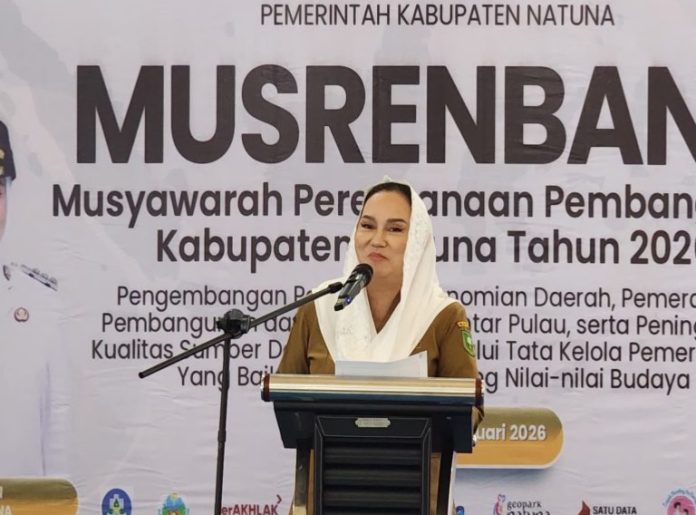 NATUNA, KABARTERKINI.co.id – Bupati Natuna Cen Sui Lan secara resmi membuka Musyawarah Perencanaan Pembangunan (Musrenbang) Tingkat Kabupaten Natuna 2026. Pembukaan berlangsung di Ballroom Gajah Mina, Adiwana Jelita Sejuba Resort, Kecamatan Bunguran Timur, Selasa 10 Februari 2026.