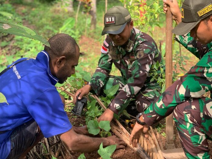 MARAUKE, KABARTERKINI.co.id – Satgas Pamtas Yonif 511/DY sebelumnya telah berkomitmen untuk bisa meningkatkan taraf kesejahteraan dan perekonomian warga selama berada di perbatasan Indonesia-Papua Nugini. Salah satunya, menyulap pekarangan rumah warga menjadi lahan pertanian yang bisa menghasilkan pundi-pundi rupiah.
