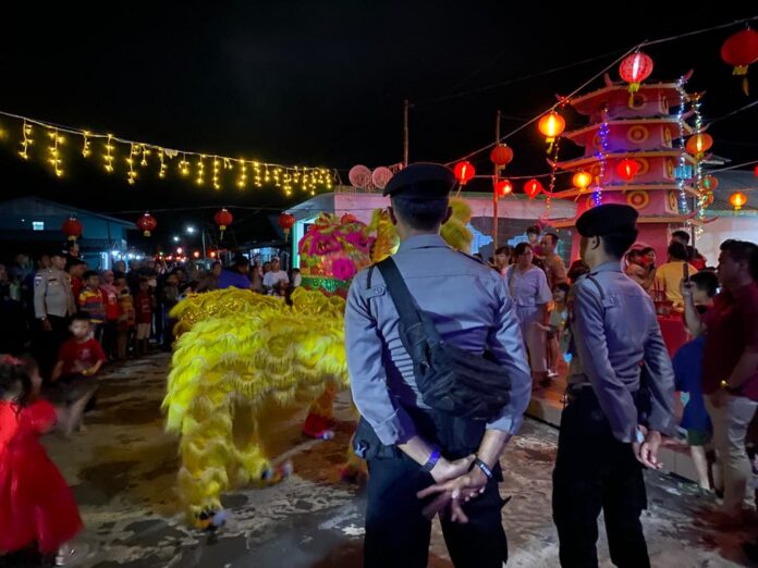 NATUNA, KABARTERKINI.co.id – Kapolres Natuna AKBP Nanang Budi Santosa menerjunkan puluhan personel dalam menjaga perayaan Cap Go Meh ke-2574. Perayaan berlangsung di Kelenteng Fuk De Chi, Kota Tua Penagi, Ahad malam 5 Februari 2023.