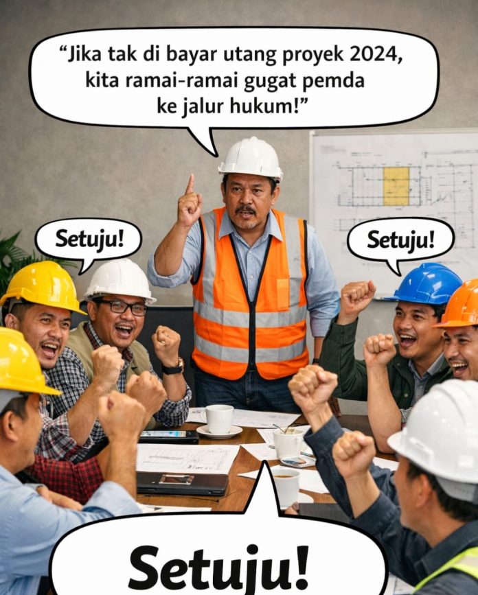 Sementara, dikutip dari berbagai sumber, jika proyek pemerintah tidak dibayar atau wanprestasi alias ingkar janji, kontraktor dapat melakukan gugatan melalui beberapa jalur hukum, tergantung jenis kontrak dan instansi pemerintah terlibat.
