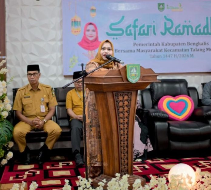 BENGKALIS, KABARTERKINI.co.id – Bupati Bengkalis Kasmarni melaksanakan Safari Ramadhan perdana 1447 Hijriah di Kecamatan Talang Muandau, Senin, 23 Februari 2026. Safari dipusatkan di Kantor Kecamatan Talang Muandau itu, berlangsung dalam suasana penuh kekeluargaan dan kebersamaan.
