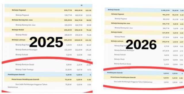 NATUNA, KABARTERKINI.co.id – Sisa Lebih Pembiayaan Anggaran atau Silpa tahun sebelumnya sebesar Rp70 miliar, sesuai postur APBD Natuna dari pelaporan Sistem Informasi Keuangan Daerah atau SIKD Desember 2025, terealisasi nihil alias tidak dipergunakan. Silpa 2026 sebesar Rp5 miliar, sesuai postur APBD Natuna dari pelaporan SIKD Februari 2026.