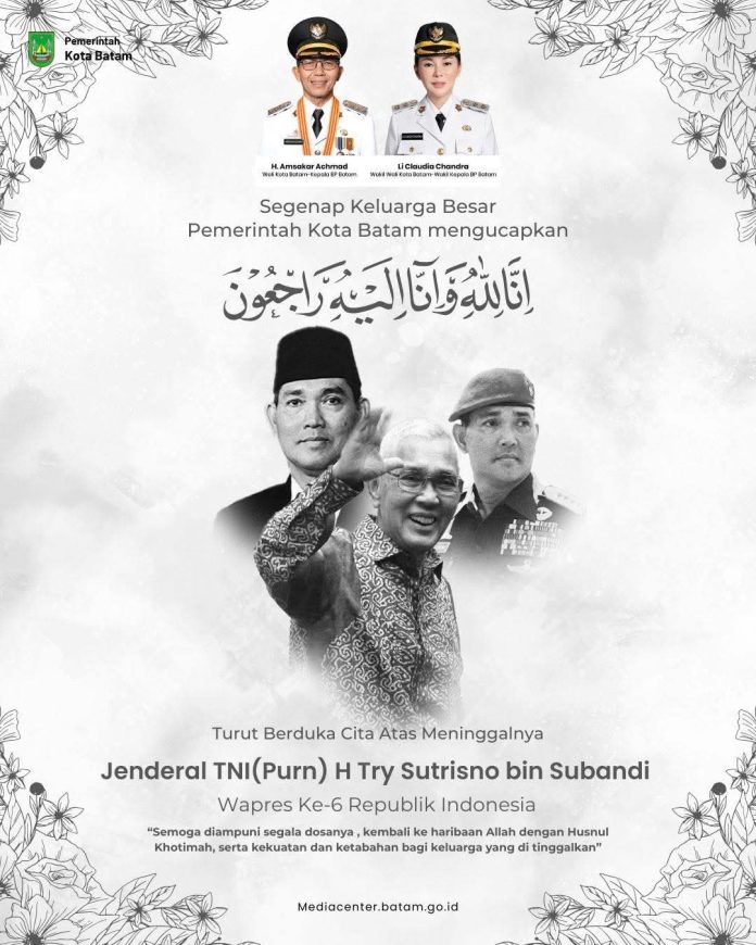 “Selain itu, atas nama Pemerintah Kota Batam, saya menyampaikan duka cita yang mendalam atas wafatnya Bapak Try Sutrisno. Semoga Almarhum mendapat tempat terbaik di sisi Tuhan Yang Maha Esa dan keluarga yang ditinggalkan diberikan ketabahan,” katanya lagi.