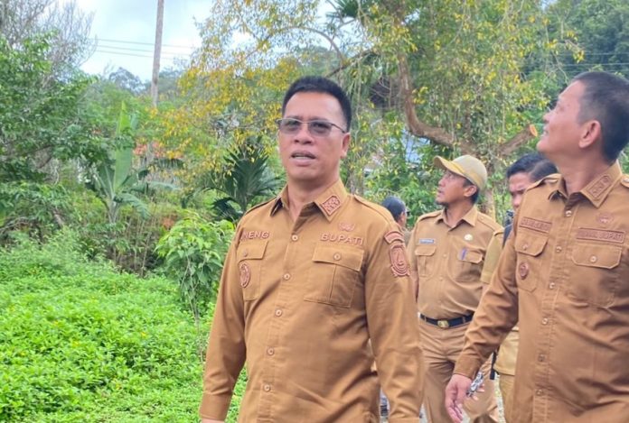 BUPATI Kepulauan Anambas Aneng dan jajaran saat meninjau Tower Combat di Tarempa Selatan